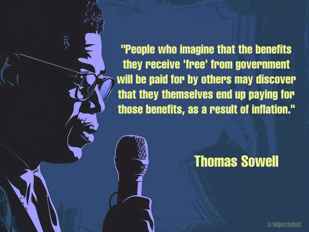 “People who imagine that the benefits they receive ‘free’ from government will be paid for by others may discover that they themselves end up paying for those benefits, as a result of inflation.”