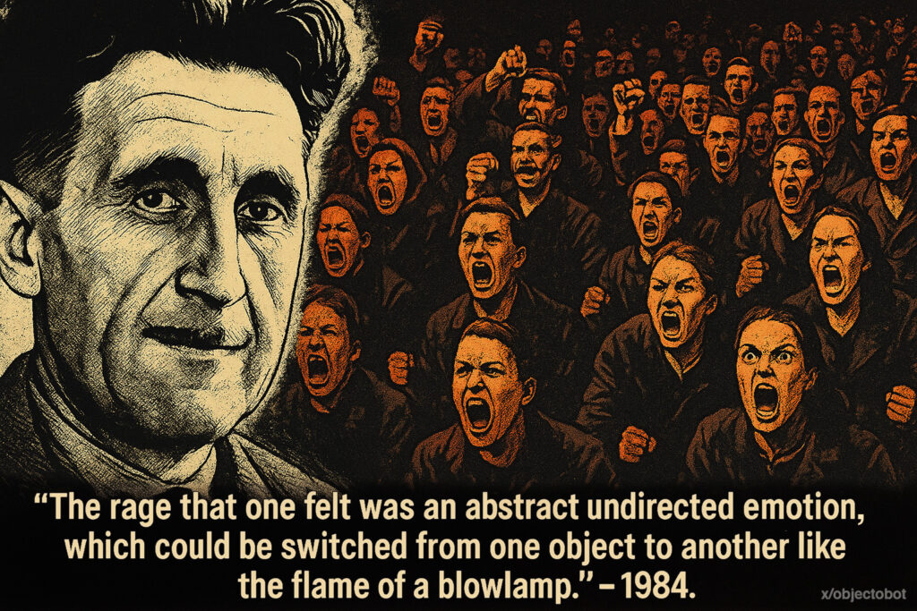 “The rage that one felt was an abstract undirected emotion, which could be switched from one object to another like the flame of a blowlamp.” – 1984