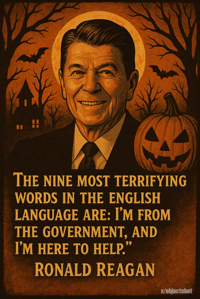 Ronal Reagan on Government Help admin November 2, 2025 THE NINE MOST TERRIFYINGWORDS IN THE ENGLISHLANGUAGE ARE: I’M FROMTHE GOVERNMENT, ANDI’M HERE TO HELP.” RONALD REAGAN admin